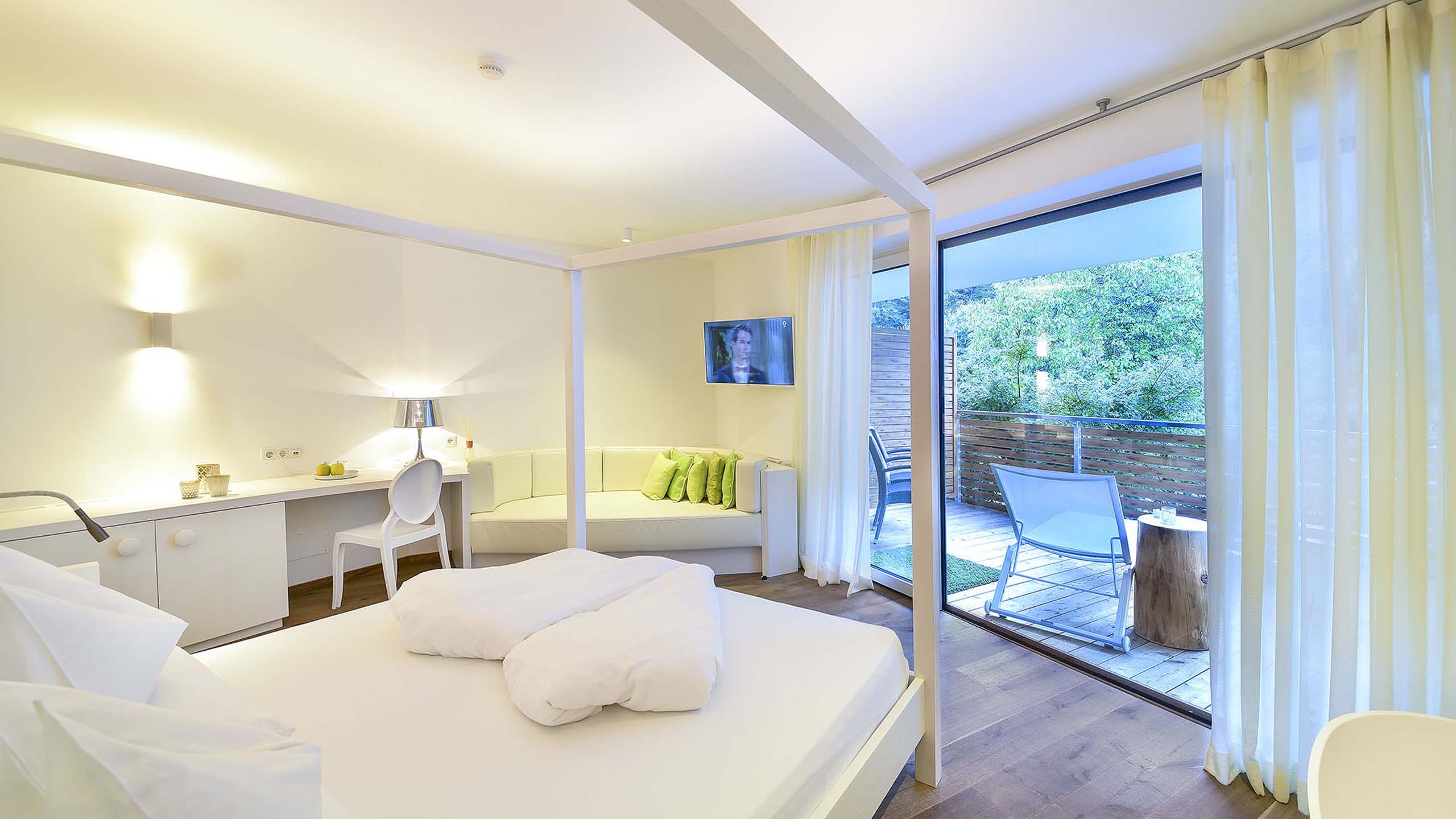 Es besteht die Möglichkeit, die Weiss Junior Suite Superior mit einer Verbindungstür zur Weiss Junior Suite zu buchen.